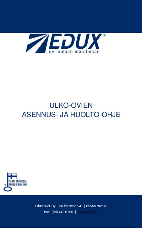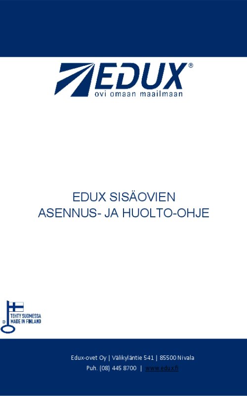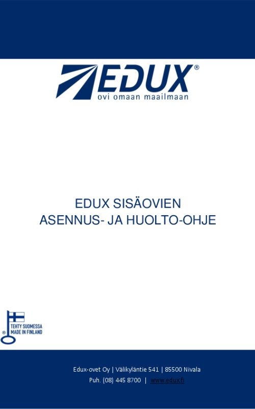 Sivuiltamme löytyy paljon tuotetietoa, mutta vielä tarkemman oviesittelyn sinulle antaa Edux-jälleenmyyjä. Jälleenmyyjiä löytyy ympäri Suomen, ja heiltä voit tilata kaikkien ovimalliemme lisäksi ovien asennuspalvelun. Voit myös asioida suoraan meidän kanssamme!