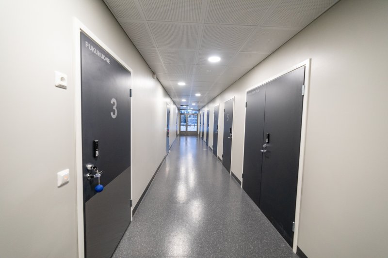 Nivalan Jäähalliin rakennettiin nykyaikaiset pukuhuonetilat, ja Edux toimitti kohteeseen kaikki saranoidut sisäovet.