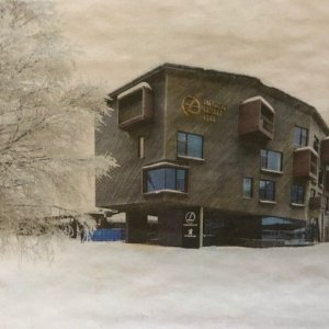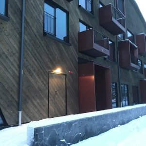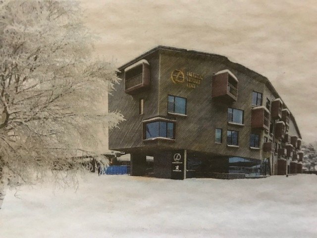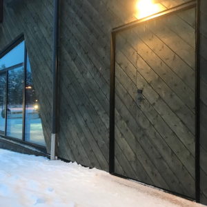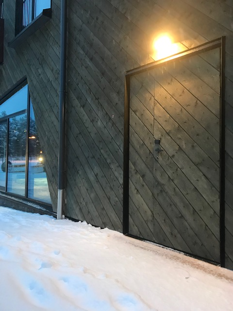 Eduxin valmistama massiivipuurakenteinen levikkeellinen pariovi löytyy upeasta uudesta Design Hotel Levistä. Oven ulkopuolen panelointi toteutettiin työmaalla seinäverhoilun mukaiseksi Rakennusliike T. Myllyneva Oy:n toimesta.