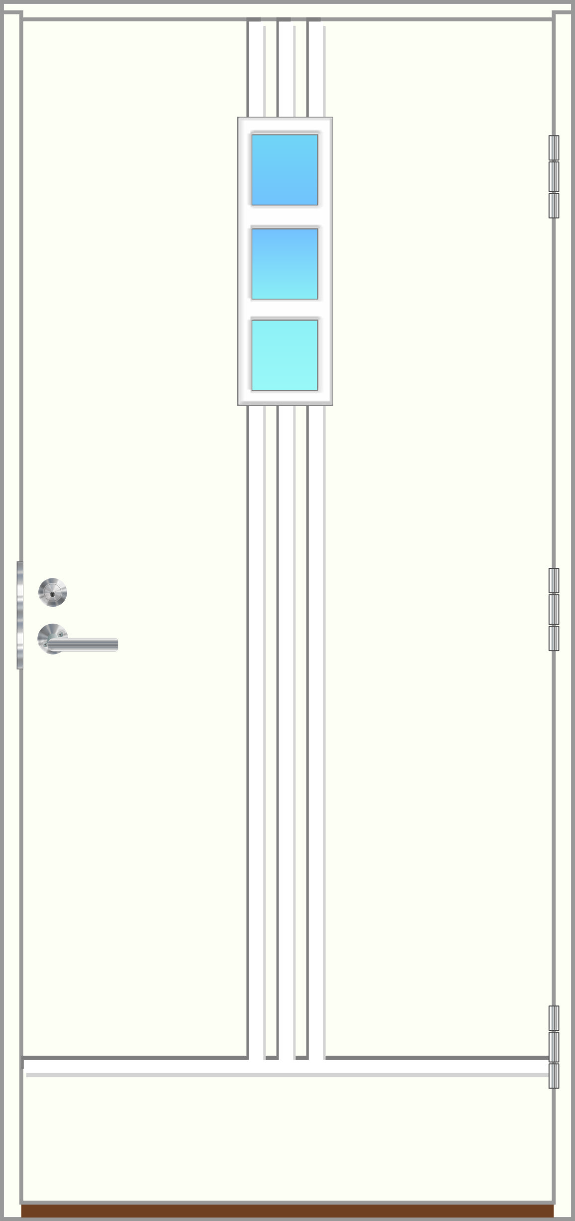| Tiiviste: | 2-kertainen tiivistys + palotiiviste. Harmaa silikonitiiviste ovilehdessä ja karmissa |