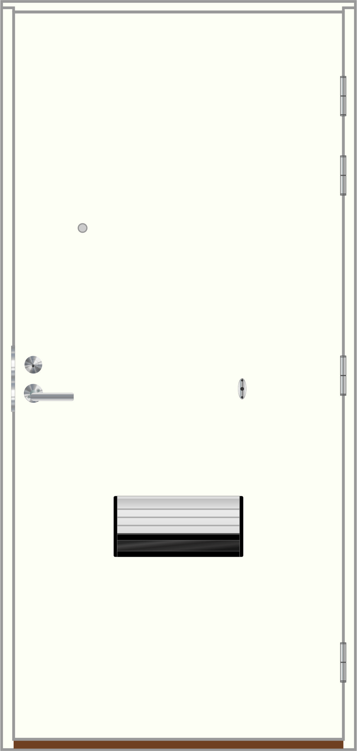 Tiiviste: | 2-kertainen tiivistys. Harmaa silikonitiiviste ovilehdessä ja karmissa. Ovilehdessä palotiiviste |