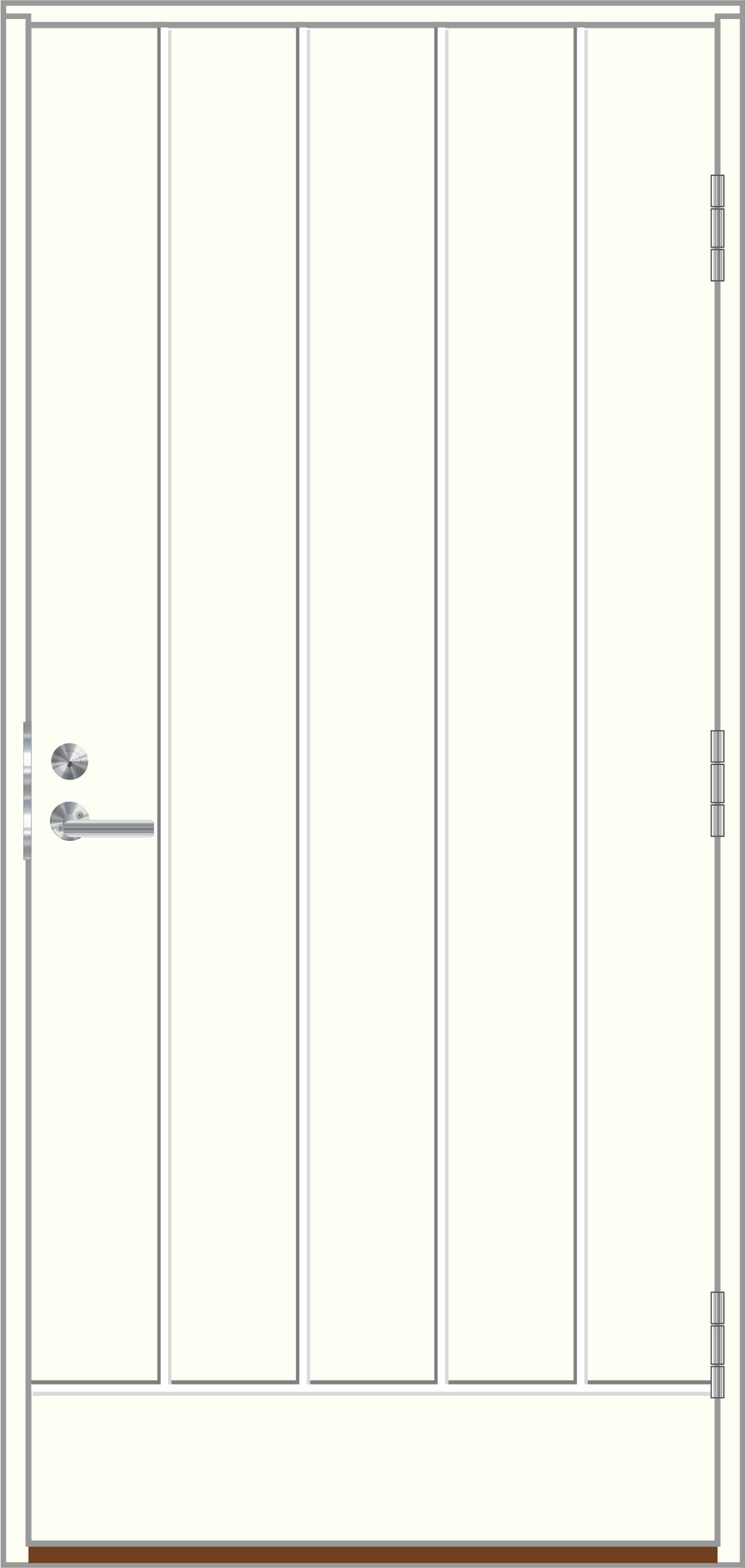 | Tiiviste: | 2-kertainen tiivistys + palotiiviste. Harmaa silikonitiiviste ovilehdessä ja karmissa |