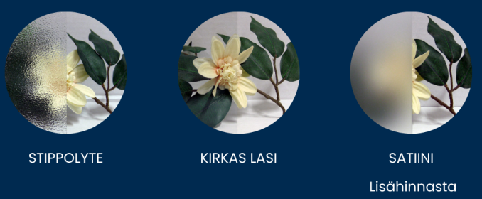 - Lasikehät ja karmit saatavilla eri värisinä kuin ovi