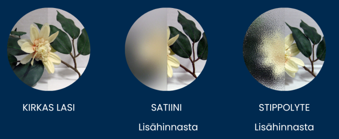 - Lasikehät ja karmit saatavilla eri värisinä kuin ovi