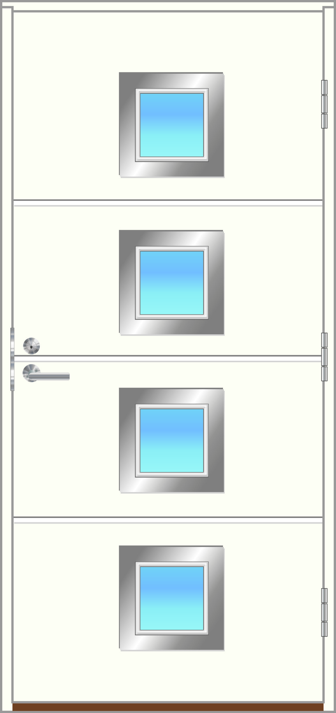 | Tiiviste: | 2-kertainen tiivistys + palotiiviste. Harmaa silikonitiiviste ovilehdessä ja karmissa |