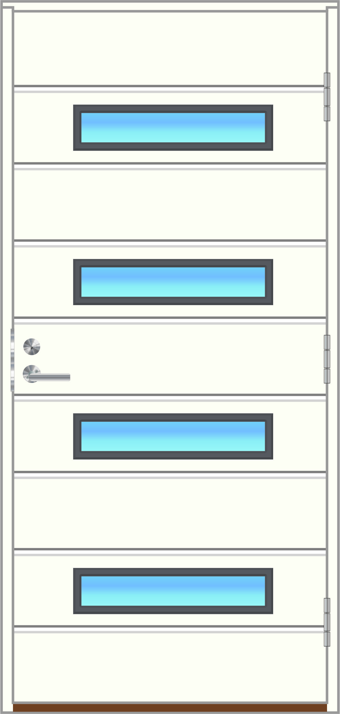 | Tiiviste: | 2-kertainen tiivistys + palotiiviste. Harmaa silikonitiiviste ovilehdessä ja karmissa |