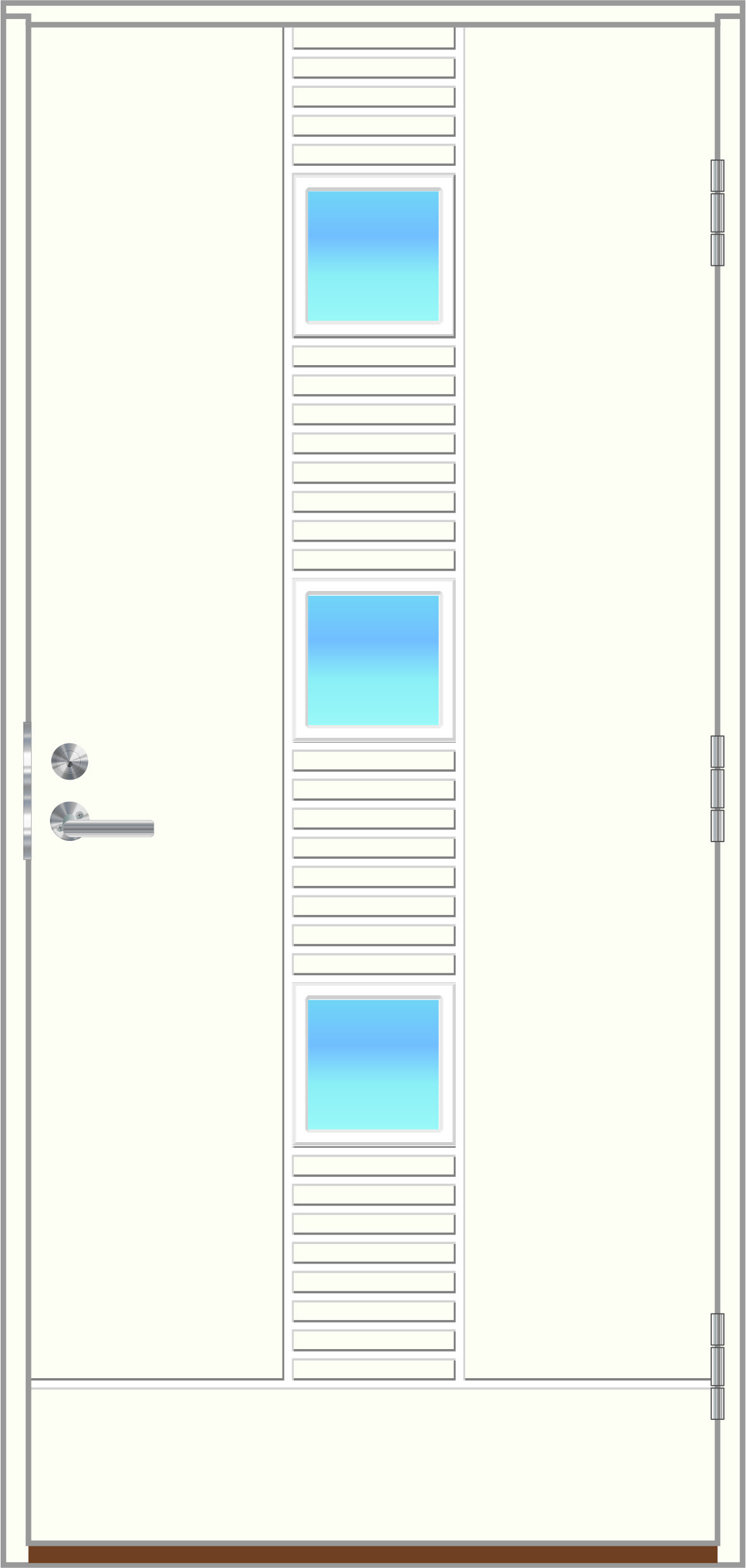 | Tiiviste: | 2-kertainen tiivistys + palotiiviste. Harmaa silikonitiiviste ovilehdessä ja karmissa |