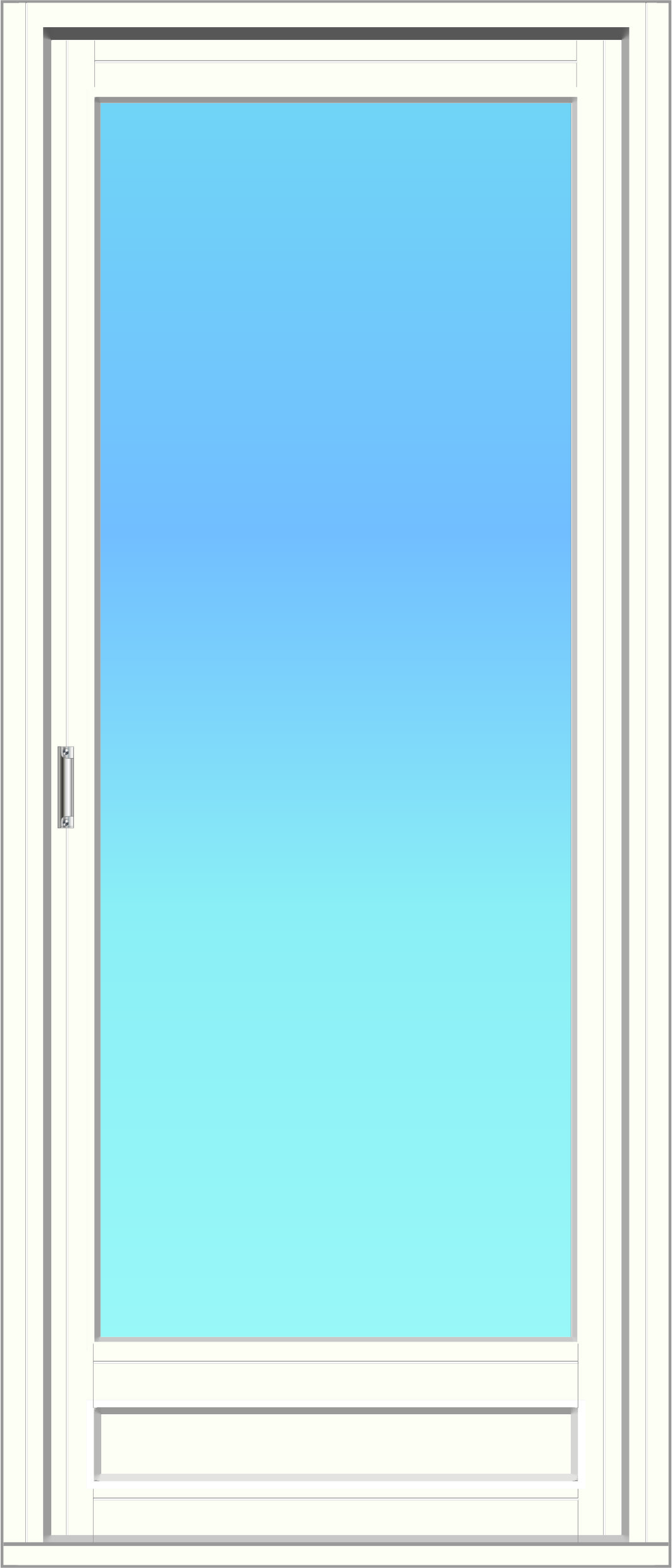 Pinta: Ulkopuoli alumiiniverhottu, sisäpuoli mäntyprofiili, umpiosassa 3.2 mm HDF-levy