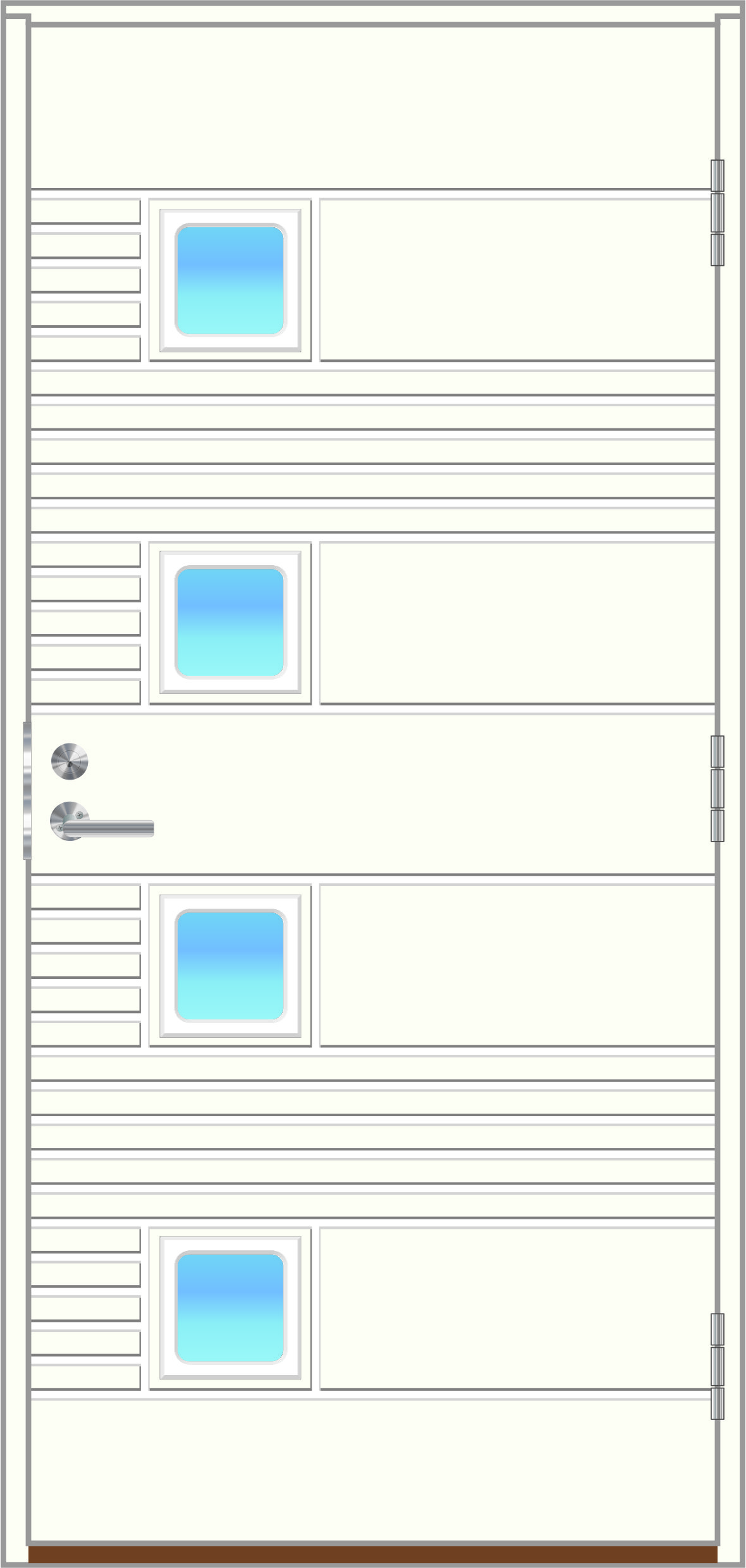 | Tiiviste: | 2-kertainen tiivistys + palotiiviste. Harmaa silikonitiiviste ovilehdessä ja karmissa |