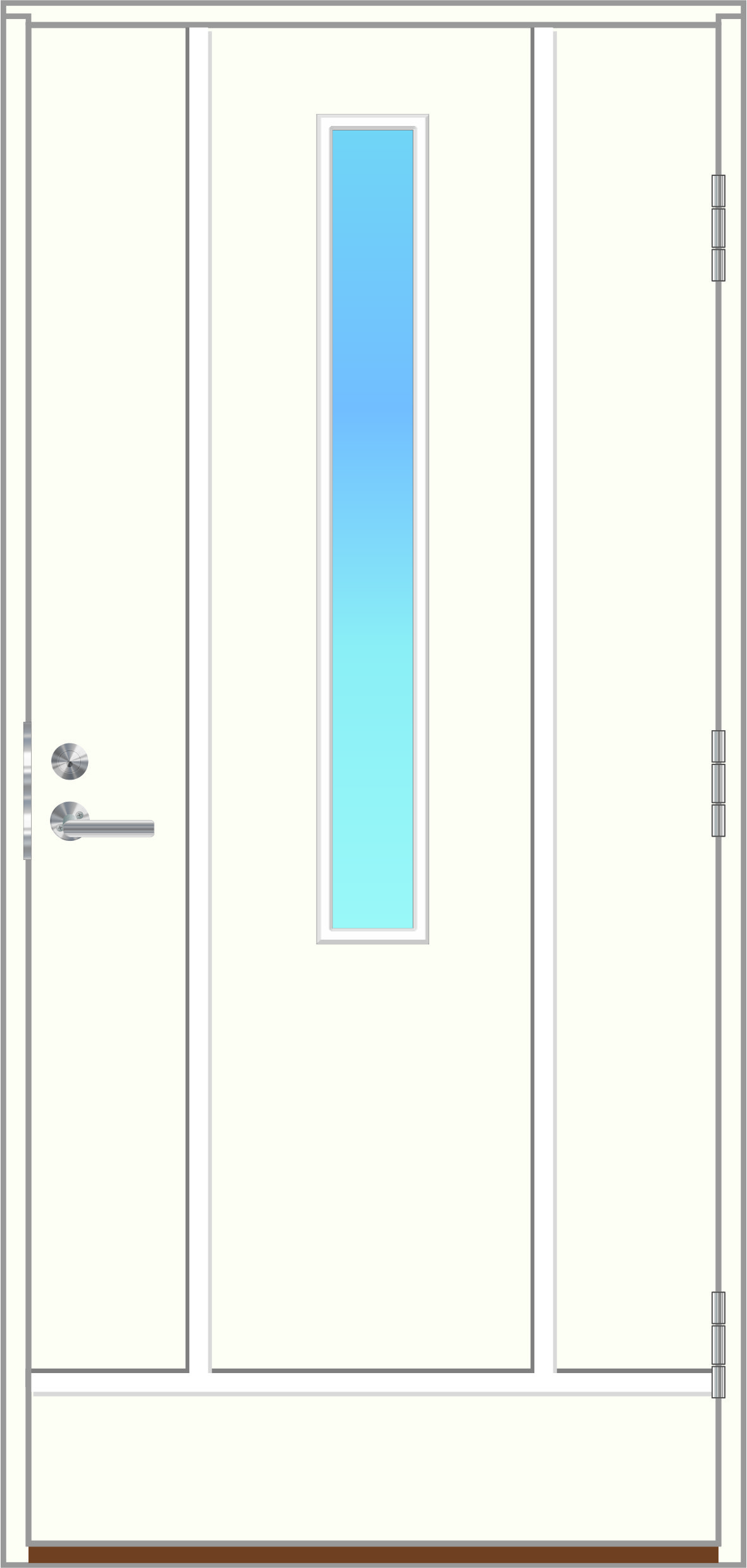 | Tiiviste: | 2-kertainen tiivistys + palotiiviste. Harmaa silikonitiiviste ovilehdessä ja karmissa |