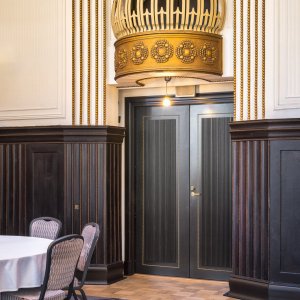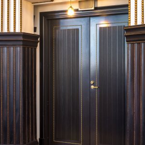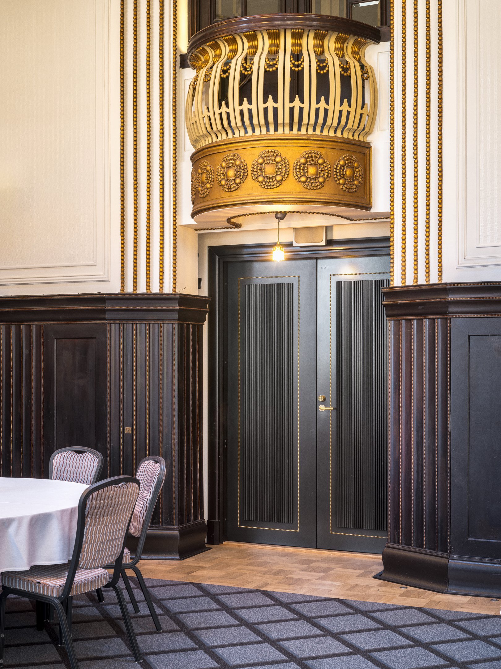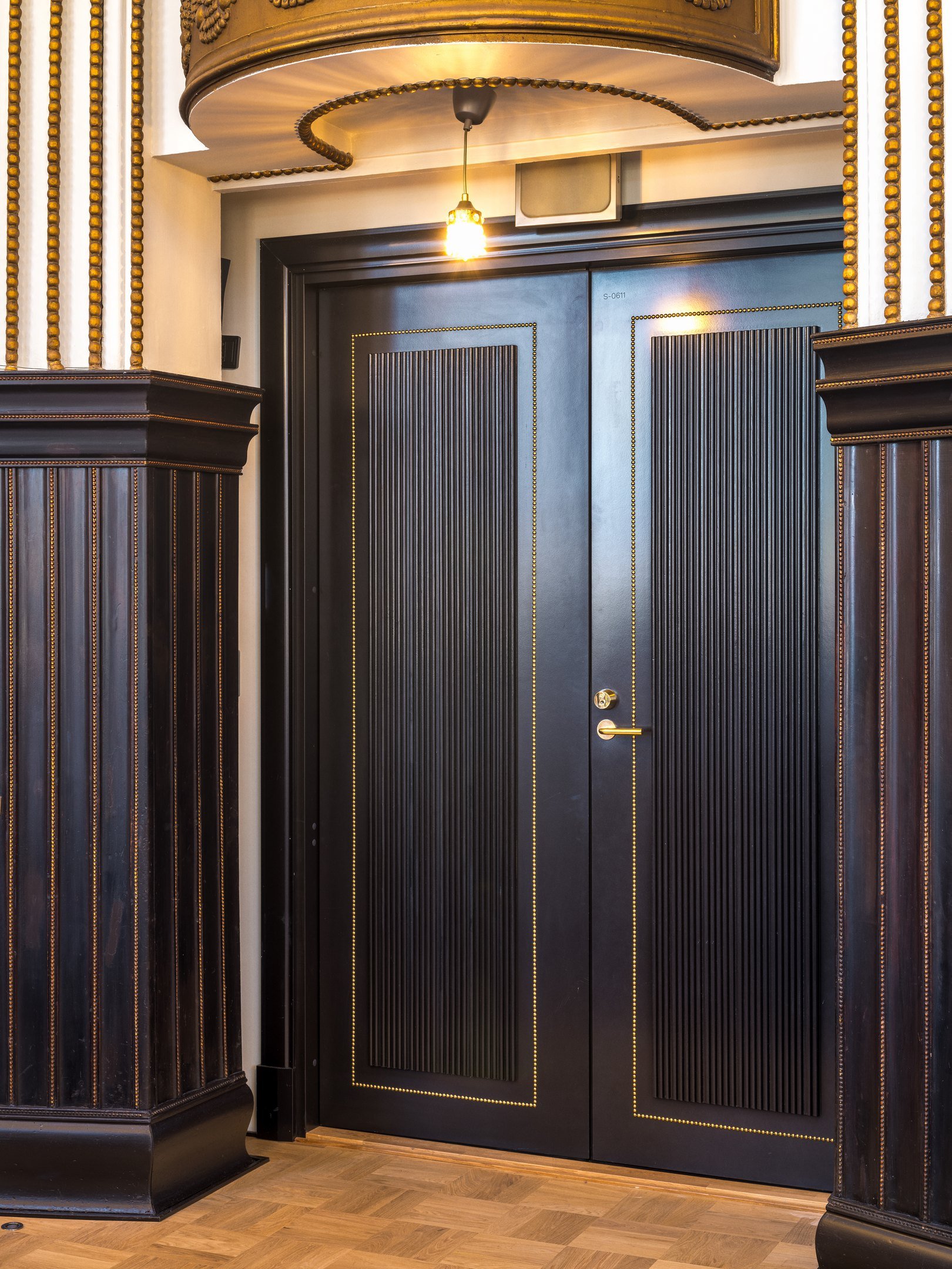 Hotellin ovet suunniteltiin ja toteutettiin huolellisesti rakennuksen arvokasta tunnelmaa kunnioittaen. Ballroomin ovissa koristeelliset helmikirjailut ja sormipaneelikuviointi tuovat tilaan arvokkuutta ja näyttävyyttä, kun taas hotellihuoneiden ovissa yksilölliset listat ja kohokuvioinnit viimeistelevät klassisen ilmeen.