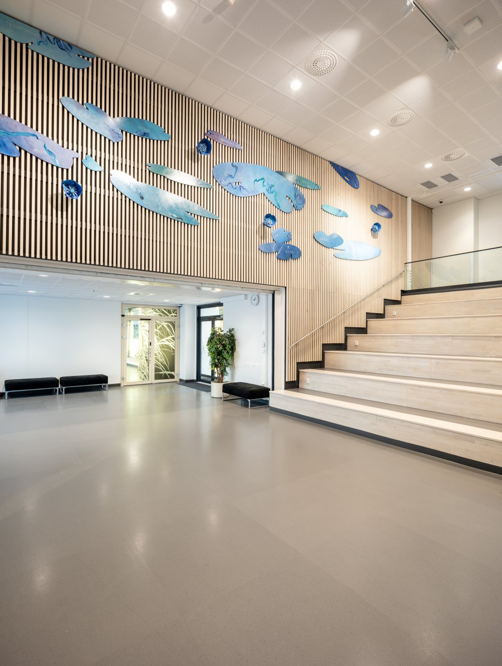 Eduxin laminaattipintaiset ovet valittiin niiden erinomaisen kulutuskestävyyden, helppohoitoisuuden ja yhtenäisen, moderniin arkkitehtuuriin sopivan ulkoasun vuoksi. Tyylikkäät pinnat ja huolellinen viimeistely tukevat hallin avaraa ilmettä ja luovat näyttävän ensivaikutelman niin urheilijoille, yleisölle kuin tapahtumajärjestäjillekin.